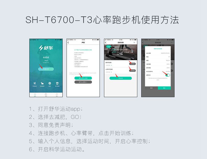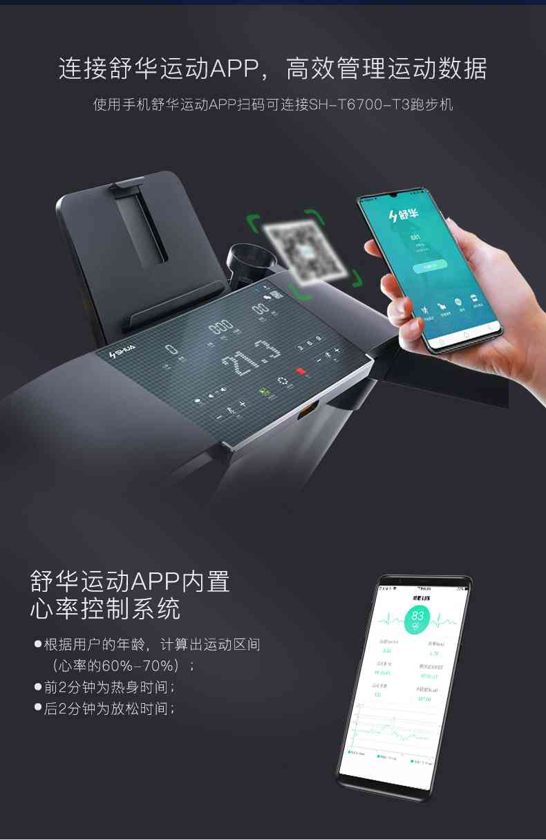 SH-T6700-T3跑步机为了帮助用户进行更加科学有效的运动,搭载YABO.COMAPP连接心率臂带实现心率控制,通过监测运动心率从而实现科学运动。