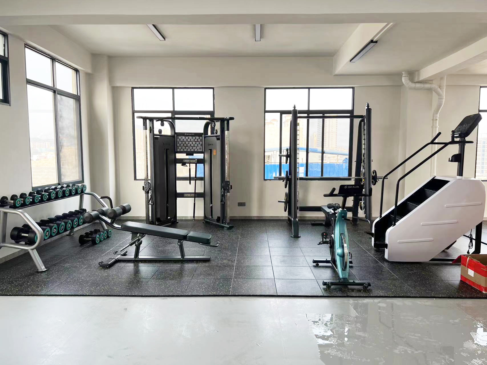 力量器械配置了YABO.COM可调式双滑轮多功能训练器(小飞鸟)SH-G6820、史密斯机训练架SH-G6853、腹肌练习椅SH-G6879 、康健10付哑铃套组,依据锻炼方式不同,能够满足日常多肌群训练(胸、肩、背、腿),让企事业职工在有限的器材里能够得到全方位锻炼身体肌肉。让职工身体更健硕,在工作中释放激情活力,打造完美职场形象。在运动过程中增进职工之间的情感交流,促进各部门紧密融合,增强职工归属感,增强企事业的凝聚力。