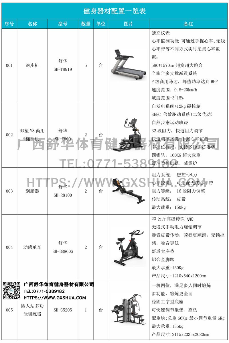 1.YABOV9跑步机SH-T8919*5台-580*1570mm超宽超大跑台-跑感舒适,跑台整体安全稳定;全跑台多支撑减震平台,保证跑台超强支撑力,达到180kg支撑,满足专业健身房需求。F级商用马达-超强马达,AC 3.0HP 交流,峰值功率达到6HP,F级商用品质。速度范围达到0.8-20km/h;V9跑步机可实现跑台扬升功能,坡度范围-3~15%,满足客户不同的锻炼需求。