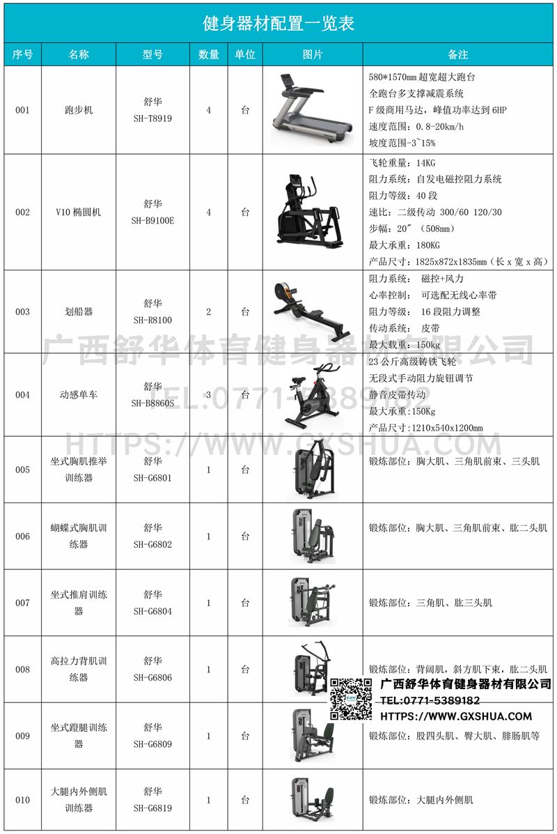1.YABO.COMV9跑步机SH-T8919*4台-580*1570mm超宽超大跑台-跑感舒适,跑台整体安全稳定;全跑台多支撑减震平台,保证跑台超强支撑力,达到180kg支撑,满足专业健身房需求。F级商用马达-超强马达,AC 3.0HP 交流,峰值功率达到6HP,F级商用品质。速度范围达到0.8-20km/h;V9跑步机可实现跑台扬升功能,坡度范围-3~15%,满足客户不同的锻炼需求。