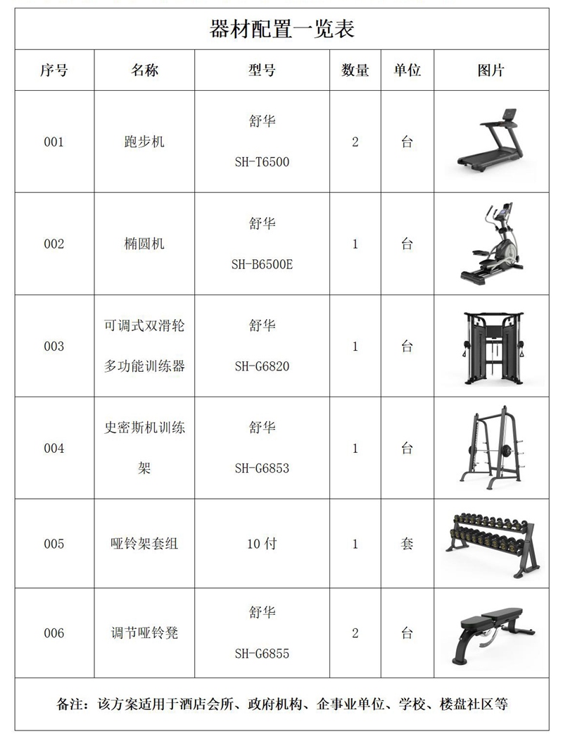 健身器材配置说明∶