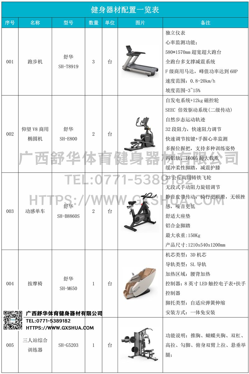 史密斯机1台)多重可调节练习椅1台)、腹肌板(1台)、10付哑铃套组(1套)、哑铃凳(1台)、可以实现对不同肌肉群的针对性训练,满足肌肉训练需求,全方位激活身体机能。