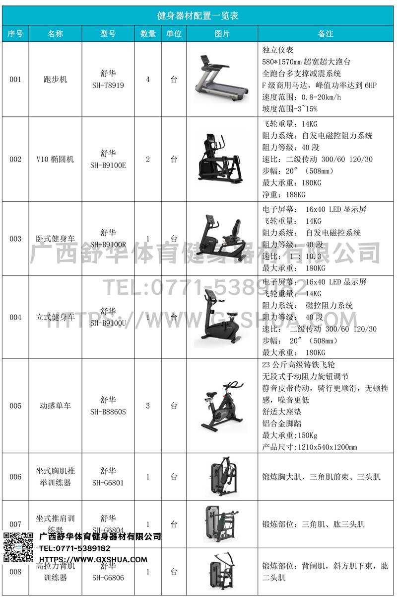 1.YABO.COMV9跑步机SH-T8919*4台-独立仪表-简洁大气,全新外观设计,健康运动新选择;心率监测功能,可通过手握心率、无线心率带等不同方式实时采集心率数据;580*1570mm超宽超大跑台-跑感舒适,跑台整体安全稳定;全跑台多支撑减震平台,保证跑台超强支撑力,达到180kg支撑,满足专业健身房需求。F级商用马达-超强马达,AC 3.0HP 交流,峰值功率达到6HP,F级商用品质。速度范围达到0.8-20km/h;V9跑步机可实现跑台扬升功能,坡度范围-3~15%,满足客户不同的锻炼需求。